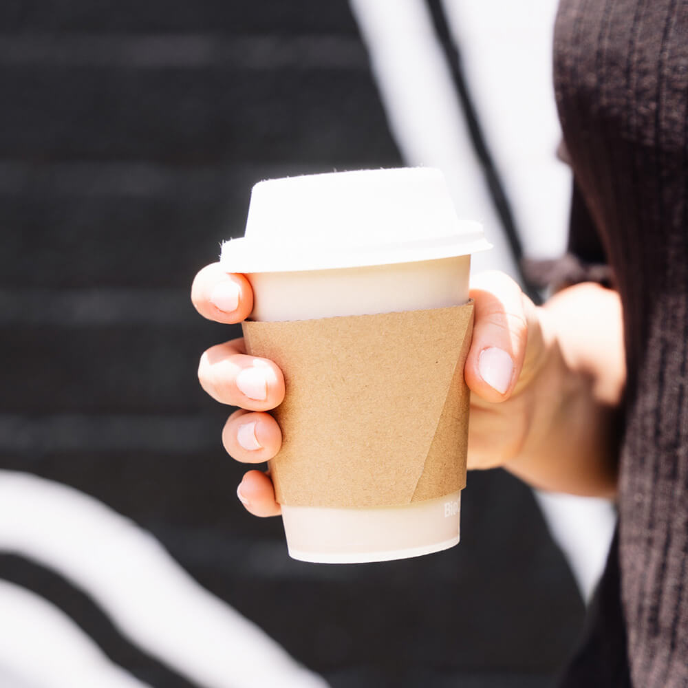 Protect customers from hot coffee & tea with these cardboard coffee sleeves. A popular item for cafes, these coffee cup sleeves are perfect for single-wall coffee cups both large and extra large size (12oz – 24oz). They are also a more sustainable solution to double-cupping hot drinks and offer a superior grip.
