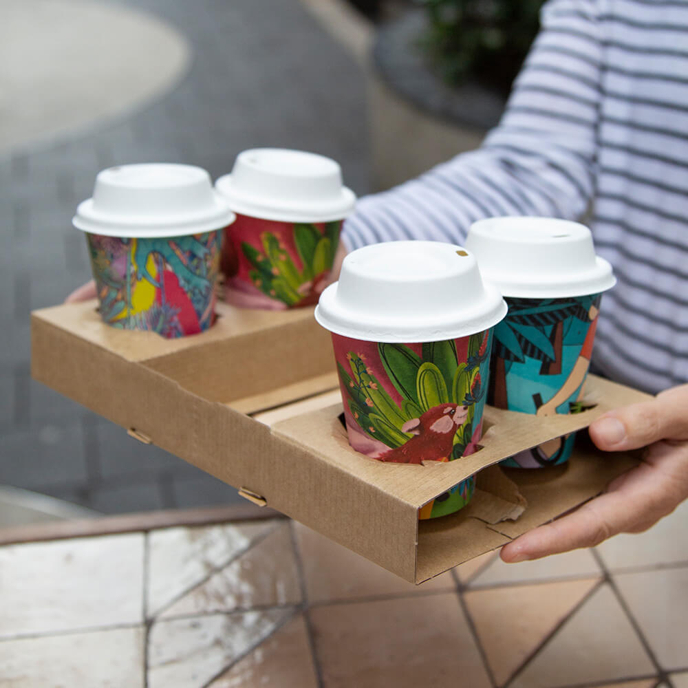 These coffee cup trays are made from premium recycled paper pulp.